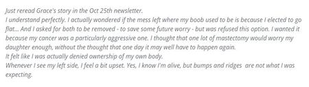 and the friend that passed...she finished rado 2 days before me..and then started getting pains, got diagnosed with secondary and 3 weeks later- gone! we were close and I miss her everyday...this disease is so shit! and my best friend merylee (silly sam) is going in for a dble masectomy tomorrow....her reacurrence has knocked me for a 6 as well. i love her so much and appreciate her frienship to the moon and back and i feel guilty that I havent helped as much as I wanted too.