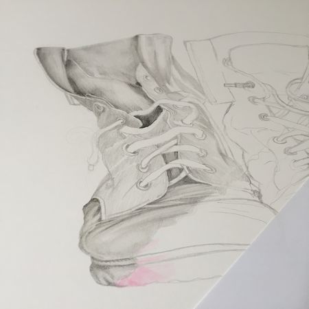 *Pink Troopers Boots - shine amongst the grey* Blick Studio Graphite and Prismacolor Col-Erase pencils on Bristol Vellum paper...