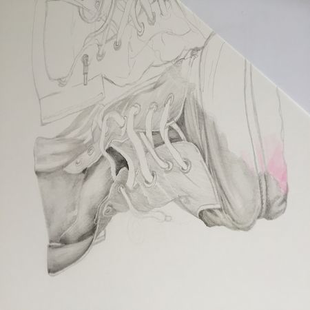 *Pink Troopers Boots - shine amongst the grey* Blick Studio Graphite and Prismacolor Col-Erase pencils on Bristol Vellum paper...