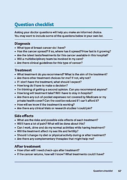If you haven't already been referred to a McGrath Breast Care Nurse, you could search for one on the McGrath Foundation website, or ask your surgeon. My surgeon gave me a card for a Breast Care Nurse so I contacted her. She provided a lot of information about surgery, recovery, and helped sort out appointments.