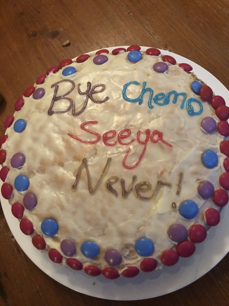 Doin_itMember7 years agoBye Chemo Had a bye Chemo dinner at my sons & daughters in law last night. How awesome is this cake. Love it!! Show More