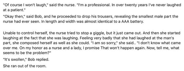 15. Took a box of condoms to the checkout clerk and asked where is the fitting room?