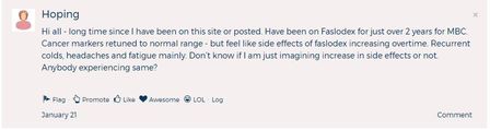 mmh43 I am about to start a series of Faslodex injections for my metastatic breast cancer in the liver, lungs and now bone spots. The liver and lung mets were discovered in 2006 and I have had several hormone treatments - Femara, Aromasin, Afinitor and chemotherapies - Xeloda, Caelyx and Eribulin since then. While I know everyone's cancer is different I would like to hear from any members who have used Faslodex and found it successful in either shrinking or slowing their tumours. Info on side effects experienced would be helpful too. Thank you
