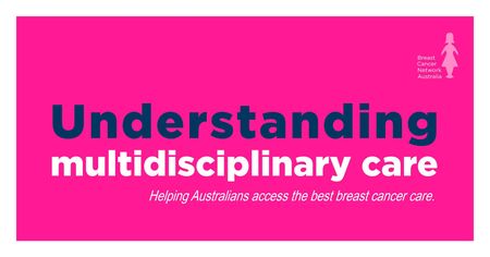Hi members, During October for breast Cancer Awareness Month, BCNA will shine a light on optimal breast cancer care. The aim is to raise awareness in the community, the health sector and amongst the BCNA network about what optimal care means. I know not all of you are on other social platforms so I thought this would be a good idea to share the key October social media posts through the online network that relate to the theme of 'understanding my care'. The second of the five key areas of the Optimal care pathways for people with breast cancer is: 'Supportive Care' Supportive care is a standard or routine aspect of cancer care to deal with issues that emerge for you, your family and carers from the effects of the cancer diagnosis and its treatment. Supportive care is provided by a diverse range of service providers which includes BCNA and other non-governmental organisations (NGOs). (My Journey has a great article Support for you when diagnosed with early breast cancer). Your wishes and needs, as well as your family and carers, should determine the level of support provided to you. Supportive care should begin from the time of your diagnosis and continue throughout your cancer treatment pathway, including once active treatment has ceased. If you would like more information about supportive care or the optimal care pathway, you can call BCNA's Helpline on 1800 500 258 between 9:00 am - 5:00 pm AEST Monday to Friday or visit our website at https://bit.ly/BCNA_BCAM_65Views0likes0CommentsMy Care - Understanding Multidisciplinary Care