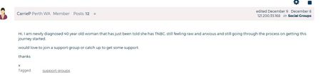 Hello everyone, I'm new here, very new, I was diagnosed with Brest Cancer on the 14th Dec 2022, one day before I turned 50, great birthday gift huh? Thank you for the ladies who responded to me, I have received a personal message, explaining that possibly the friend (s) I was referring to could see this, possibly a good point? And then I should just edit the post I had originally made if I could not delete it. So I've taken out the question altogether. This site was given to me by my beast care nurse at the mater hospital as a good reference for support groups and articles, the 1st day I tried to log on and ask a question, I couldn't stop crying and just had to walk away from my computer, so today being a good day, I thought I would reach out and try it for the 1st time. OOpppps my bad! So I thought I would ask a question on if other people had experienced friends who just bulldoze there comments away with no regards to your feeling, like suck it solider, move on, deal with it, and so forth, I went into sharing a few things that were said to me, however that was pointed out as a mistake, as the people who said these things could see post and figure out who I am should they be on this site. Lesson learnt. Don't ask for help, Don't ask for advice, I wont do that again. I'll sort this Brest cancer battle out myself, but thank you anyway for the responses I did get. As you can see its only been coming up 3 weeks tomorrow I've been diagnosed with Brest cancer, so its all still super early, I've seen my surgeon, my Brest Care nurse, the hospital admission clerk, now waiting on the RET-CT Scan, I should have never asked my question in here. I wont do that again. Sorry to have bothered you all455Views0likes15Comments46 / Hi / Comfort of knowing you guys are here /(IVF link?)