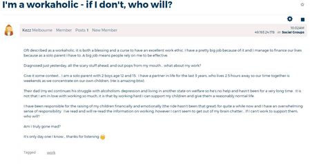 3 weeks ago I was a 58 year old business woman working 2 jobs and looking forward to a holiday this weekend, since then I've been diagnosed with DCIS invasive breast cancer, had a lumpectomy one Friday, then got a call from my surgeon in the middle of my 59th birthday party to say we needed another op last Friday (a week later) because the cancer was too close to the margin of what they took out. The good news is it's not in my lymph glands and I can't believe that I am actually saying to friends, it's all good if the genetic test comes back negative I only have to do daily radiation for 6 weeks and take tamaxifen for a few years. To even consider in my own head this is a great thing is like some weird movie of someone else's life, how far from normal everything has become. I feel numb as if this is not really happening to me and it is a crappy nightmare that I will wake up from. To top it off my neice died of exactly the same thing so I have seen the worse case scenario. I have been diagnosed early they tell me so I should not think her experience will be mine. I have used my cruise holiday as the goal that has kept me going, I will crawl up that gangway on my knees if I have to on Saturday, I had $10,000 in the bank 3 weeks ago and although I am a private patient with the highest insurance it is the expenses that have been more of a worry than anything. I thought I would not be out of pocket at all and have bills up to about $7,000 so far (they have not all come in yet) and will be lucky to get $3,000 back. When an anaesthetist charged $900 and NIB payed $75 back I rang them to find out why they are paying such a small refund - he is charging $600 over the set fee. I went for a genetic test $900 and came home to the first of 2 pathology bills and it is $1450. With 2 mortgages and being off work I am going broke very quickly. I am going to post the list of costs and refunds once all the bills are in so other people can have a big think about whether it is worth having private health insurance. NO ONE TELLS YOU THIS FINANCIAL STUFF TILL IT HAPPENS TO YOU. I will be going public for anything else involving breast cancer or anything else for that matter. I have however had a wonderful surgeon (recommended by a friend at work) who has made my breast look really good, she has been totally worth it. The beautiful part of my story is that people all around the world have prayed for me, my ex sister in law's church in Ontario Canada held me up in their prayers which touched me greatly. I've walked with God all my life and I am continuing to do that now (although I am not wanting to meet him in person for a few more years LOL). Thanks for reading my rant, I needed to get it off my chest :)179Views0likes12CommentsWhat do I tell work?